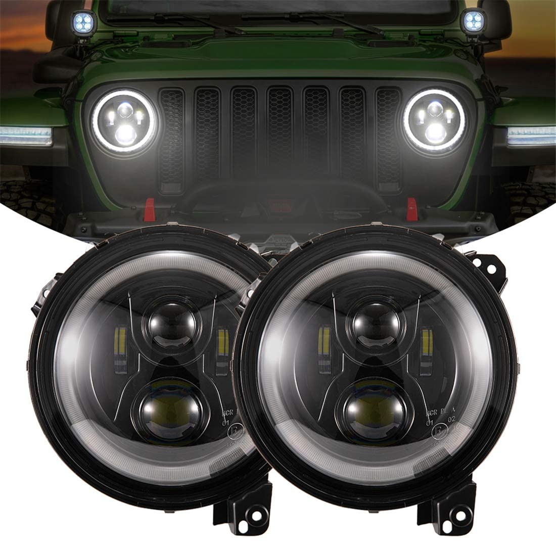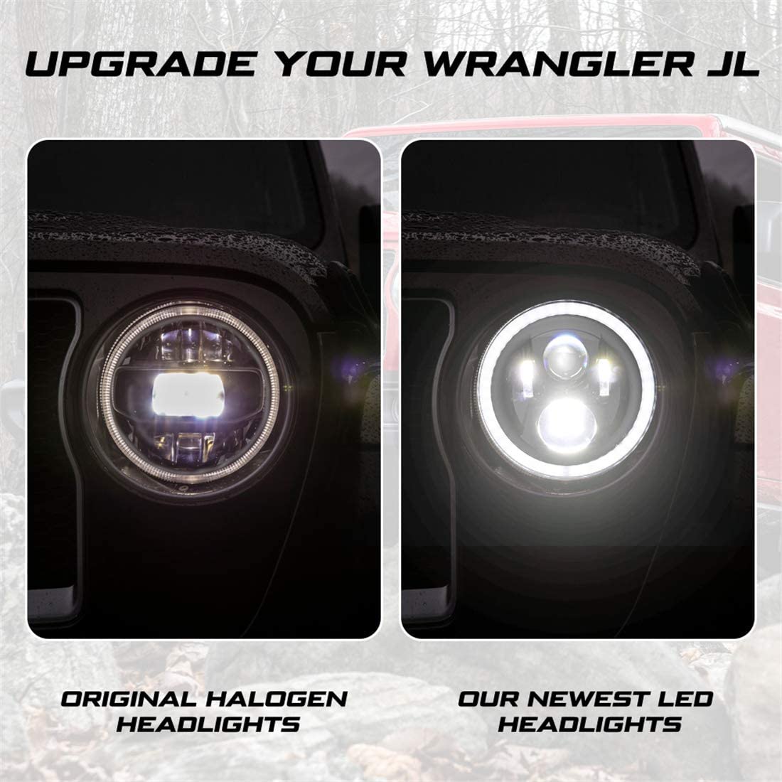 Kiwi Master 9 Inch Round LED Headlights Halo DRL for 2018 2019 Jeep Wrangler JL 2020 Jeep Gladiator JT Accessories High Low Beam Headlight with Daytime Running Lights (New Version Adjustable Screw)